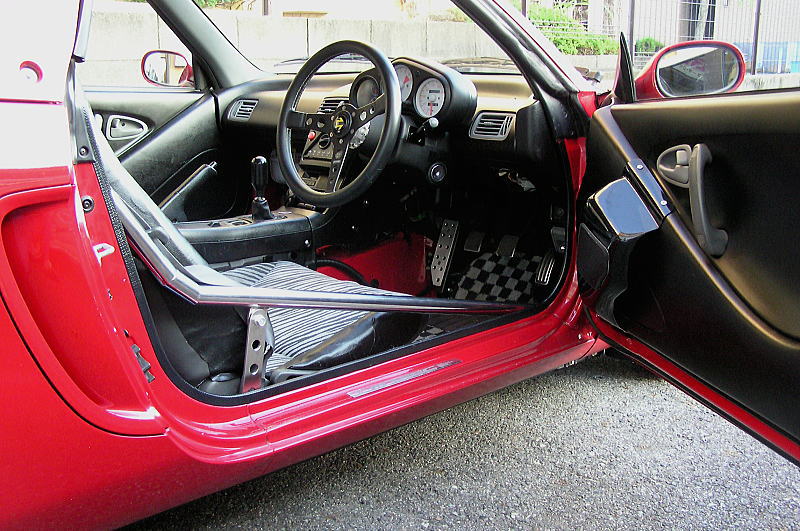 女房が普通に乗ることを考慮すべく、乗り降りの妨げとなるような補強パーツを避けるために、フロア周りでの剛性アップを重視して仕上げてあります。