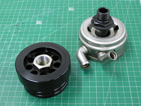冷却水でエンジンオイルを冷却するクーリングユニットであり、オイルフィルターにサンドイッチ装着しますから、オイル漏れや油圧低下の心配が少なく、車速に左右されない温度管理が可能です。