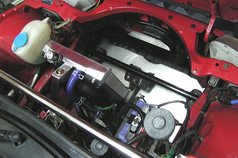 また経年劣化が気になっていたラジエターを「ビッグコアラジエターA」に換装しつつ、搭載角度も少し起こすことでクーリング性能が高まるようにしてありますから、クーラント交換と相まって大きく期待ができる要因になっていると思います。